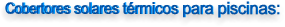 Se usa para la temporada de baño en verano, está fabricado de polietileno en burbujas de alta resistencia. Este cobertor utiliza los rayos del sol para calentar el agua durante el día y mantener la temperatura por la noche. Reduce la evaporación del agua hasta en un 95% por tanto ahorra agua y productos de tratamiento. Protege la piscina de suciedad. Posibilidad de instalar un enrollador en forma de trípode tanto manual como automático para facilitar su recogida.