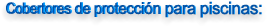 Se usan para invierno, evita la descomposición del agua para no tener que renovarla temporada tras temporada, anula los efectos de las heladas y asi conservar el vaso, impide el paso de la suciedad y garantiza la seguridad ante caídas accidentales. Están fabricados en hilo de poliéster recubierto de PVC, lacado y con tratamiento UV.