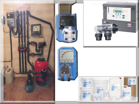 Sistemas de dosificación automática (corladores salinos, bombas inyectoras de membrana o peristálticas para cloro, reductor de PH, algaidas y floculantes), disponemos de todos los productos químicos necesarios para su piscina.